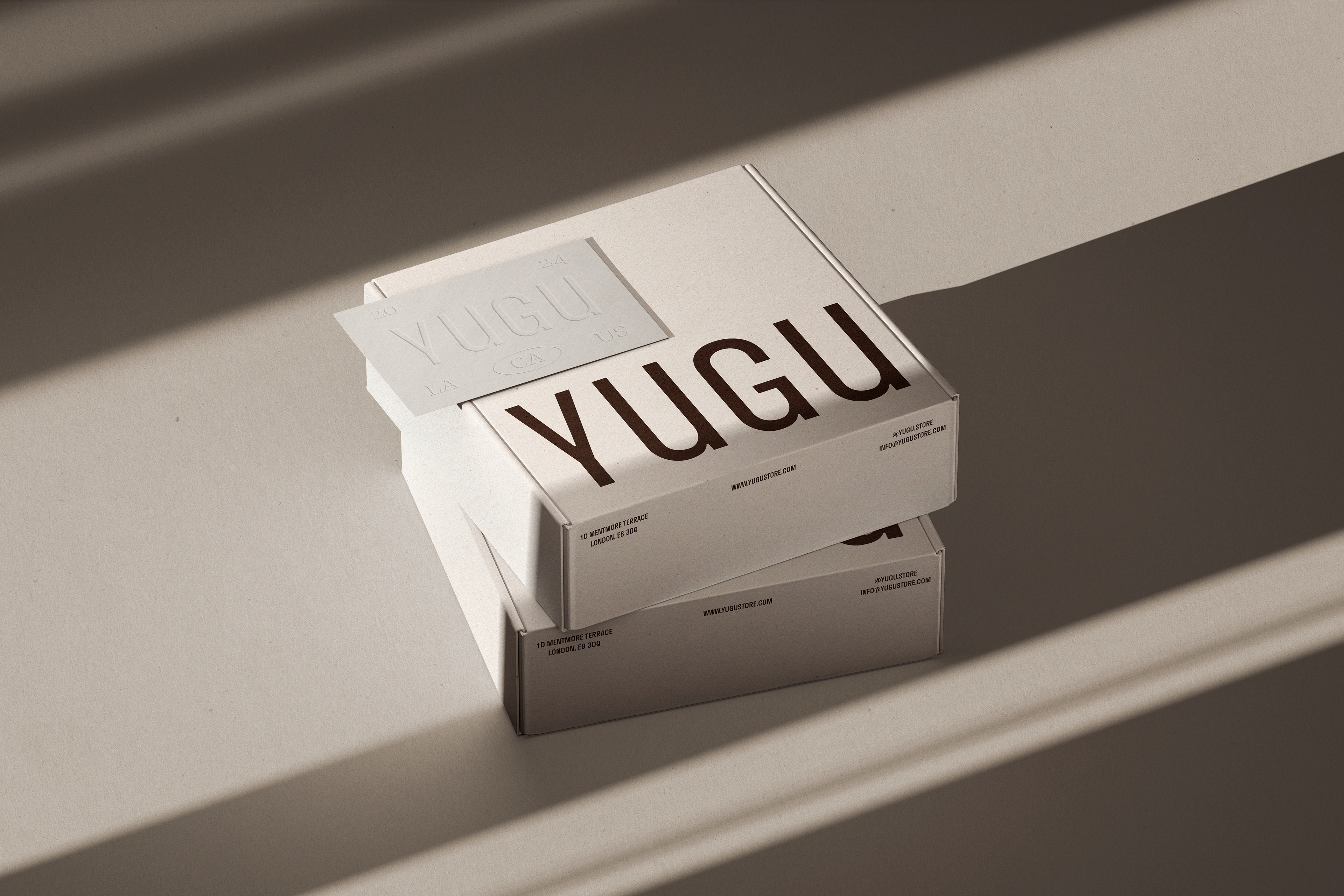 엠보싱 기법을 활용해 'YUGU' 로고에 촉각적 경험을 더했으며, 이는 명함을 손에 쥐는 순간 브랜드의 섬세함과 품질을 직접 느낄 수 있도록 한다. 전체적으로 고급스러우면서도 접근 가능한 편집샵의 이미지를 시각적·물리적으로 구현했다.