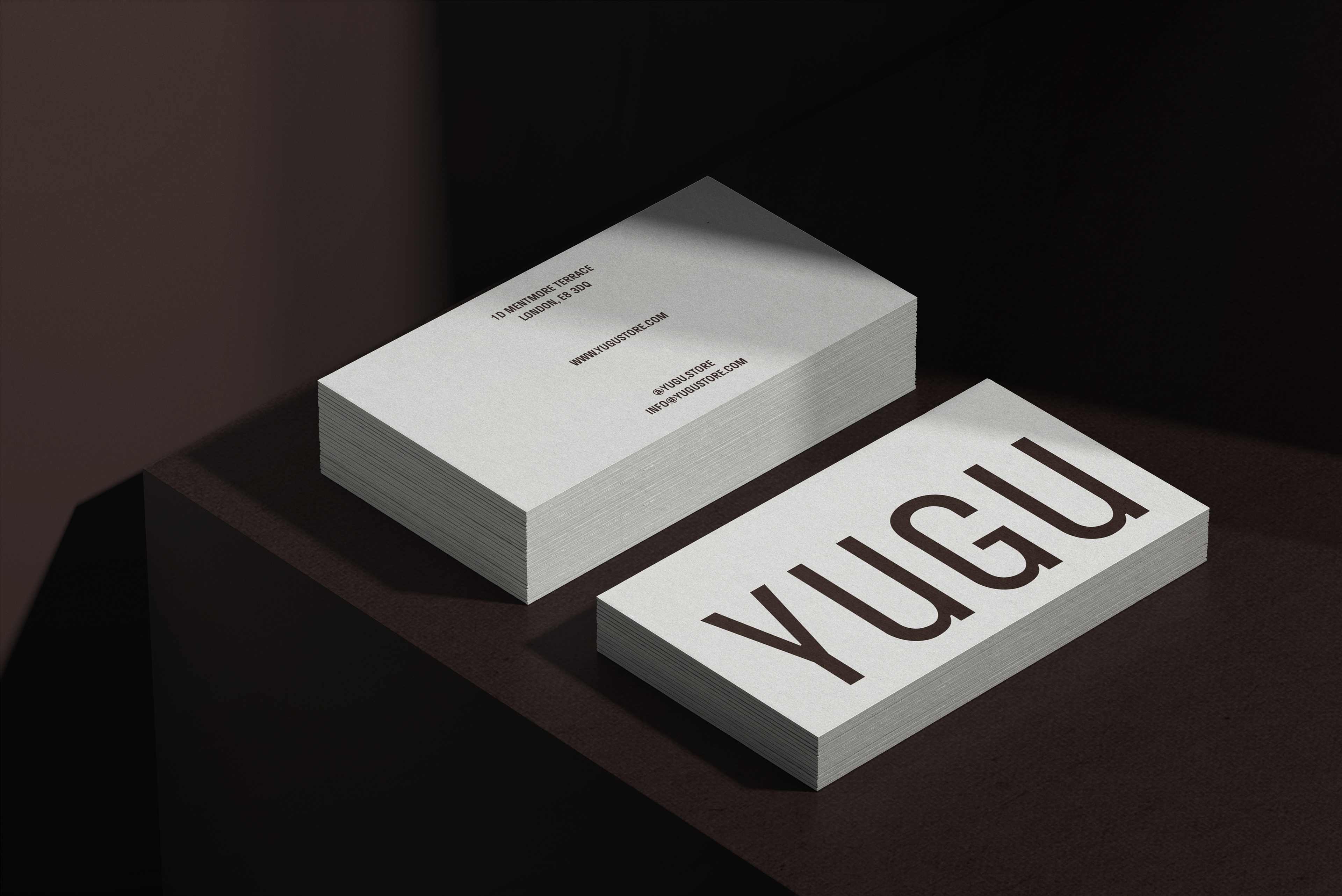 This is the business card design for YUGU, a select shop in London, UK.